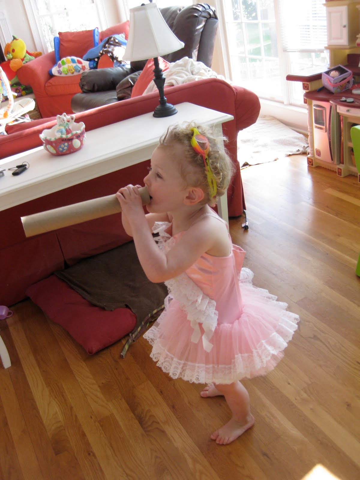 As soon as Lea got in the house she insisted on putting Aunt Christina's old ballerina outfit. The goggles really topped the outfit off!! She is going to be a fashion queen!